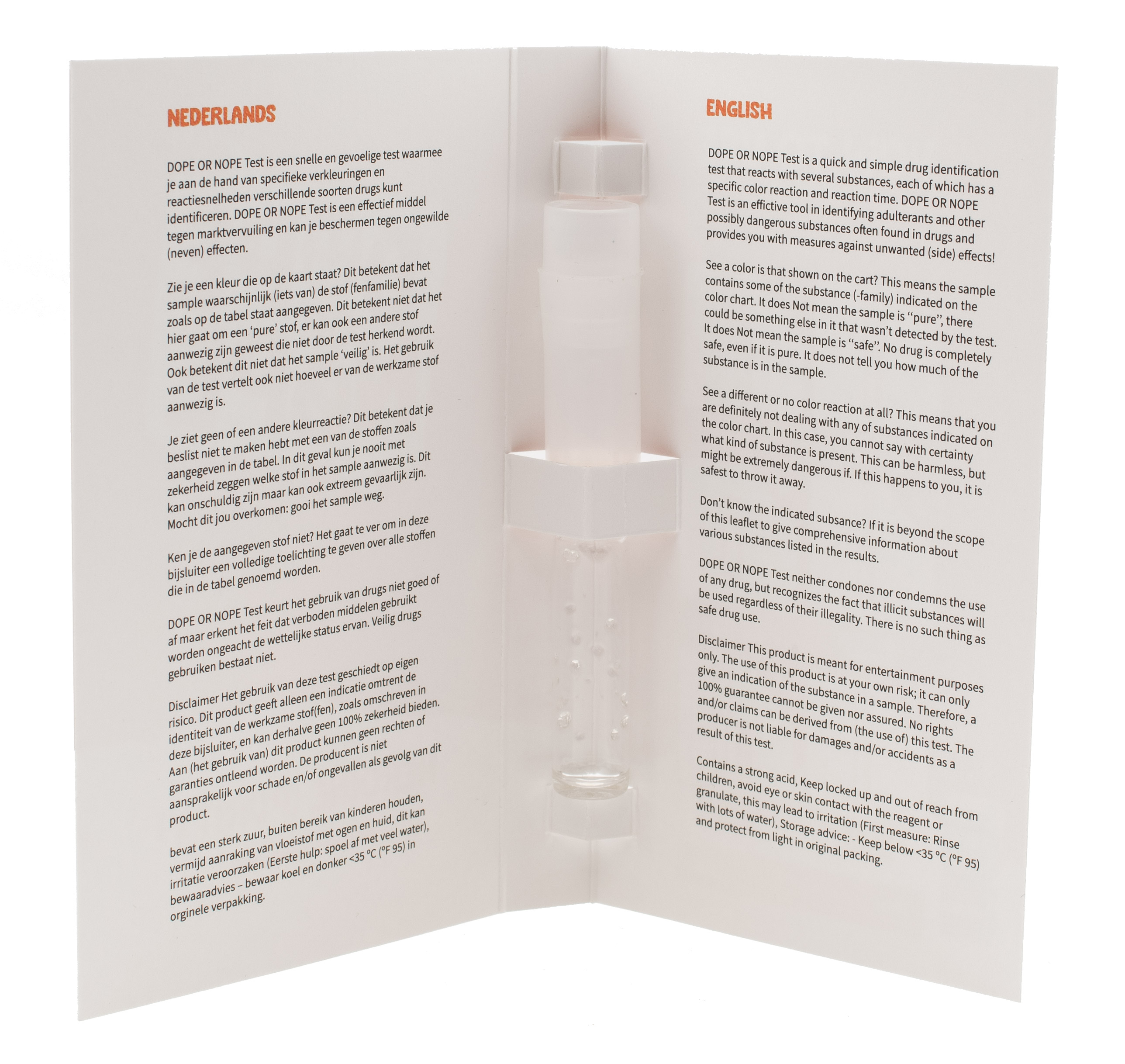 Use of this test is at your own risk. This product only provides an indication of the identity of the active substance (s), as described on this page, and can therefore not offer 100% certainty. No rights or guarantees can be derived from (the use of) this product. The producer is not liable for damage and / or accidents caused by this product.