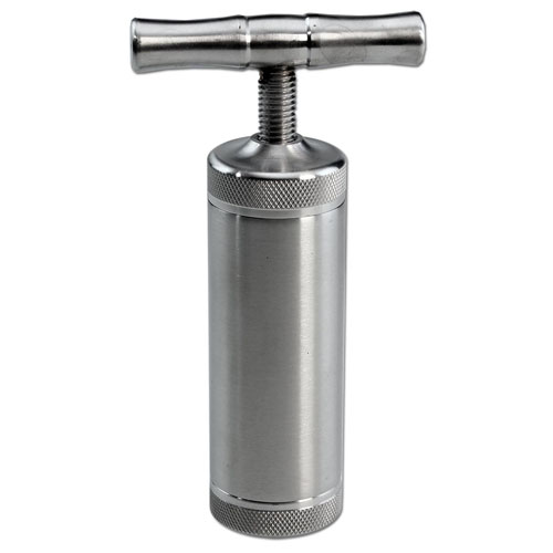 Einfache Aluminium-Gewürzpresse zum Pressen von Kräutern und Pollen.