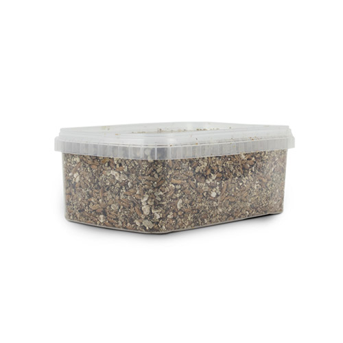 Sterilised substrate with a moisture content: 60-65%. A mixture of whole oat, vermiculite, perlite and Gypsum.