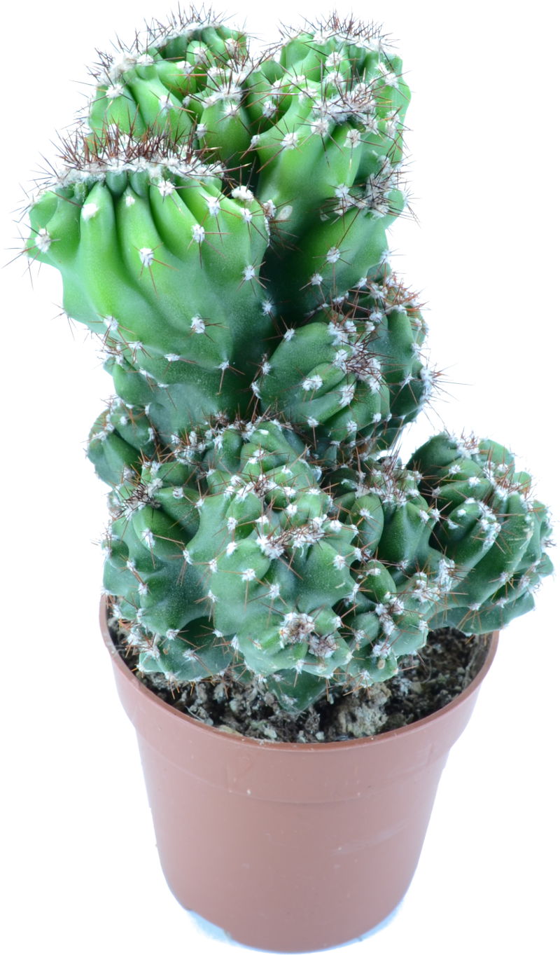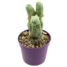Cereus peruvianus " Monstrosus ", der gemeinhin der Monströse Apfel Kaktus genannt wird, ist ein Kaktus mit einer Verzweigung , baumartiger Form . Dieser Kaktus verfügt über unregelmässig gerippte grau - grünen Stiele, die bis 15 Meter hoch wachsen, entwickelt grosse Nacht - blühende weisse Blüten und essbare orange Früchte mit weissem Fruchtfleisch.